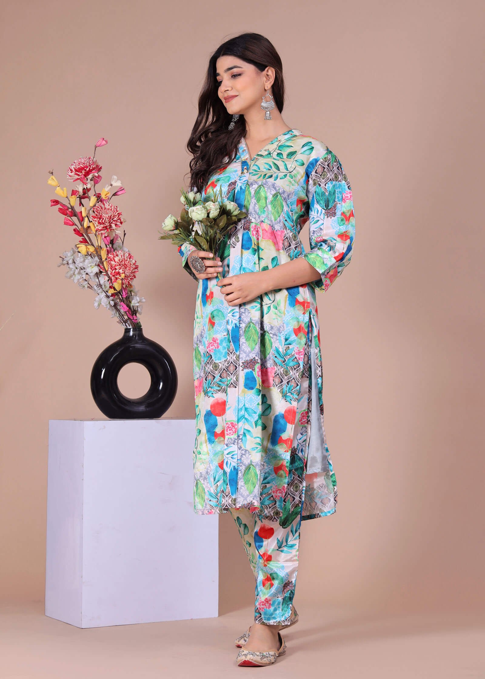 Embrace the ethereal beauty of our Off White Cotton Lurex Coord Set, where pristine hues meet subtle sparkle for a look that’s both delicate and divine. The kurta’s intricate detailing and the pants’ flowing silhouette create a sense of effortless grace, perfect for those special moments that demand a touch of sophistication and refinement. The stunning short kurta features a round neck, mother-of-pearl buttons on the front placket, elbow-length sleeves, and a curved hemline. Paired with matching Afghani salwar pants to elevate the allure. Radiate subtle charm with our Off White Cotton Lurex Coord Set, a fusion of muted oranges and gentle shimmer for a refined aesthetic.